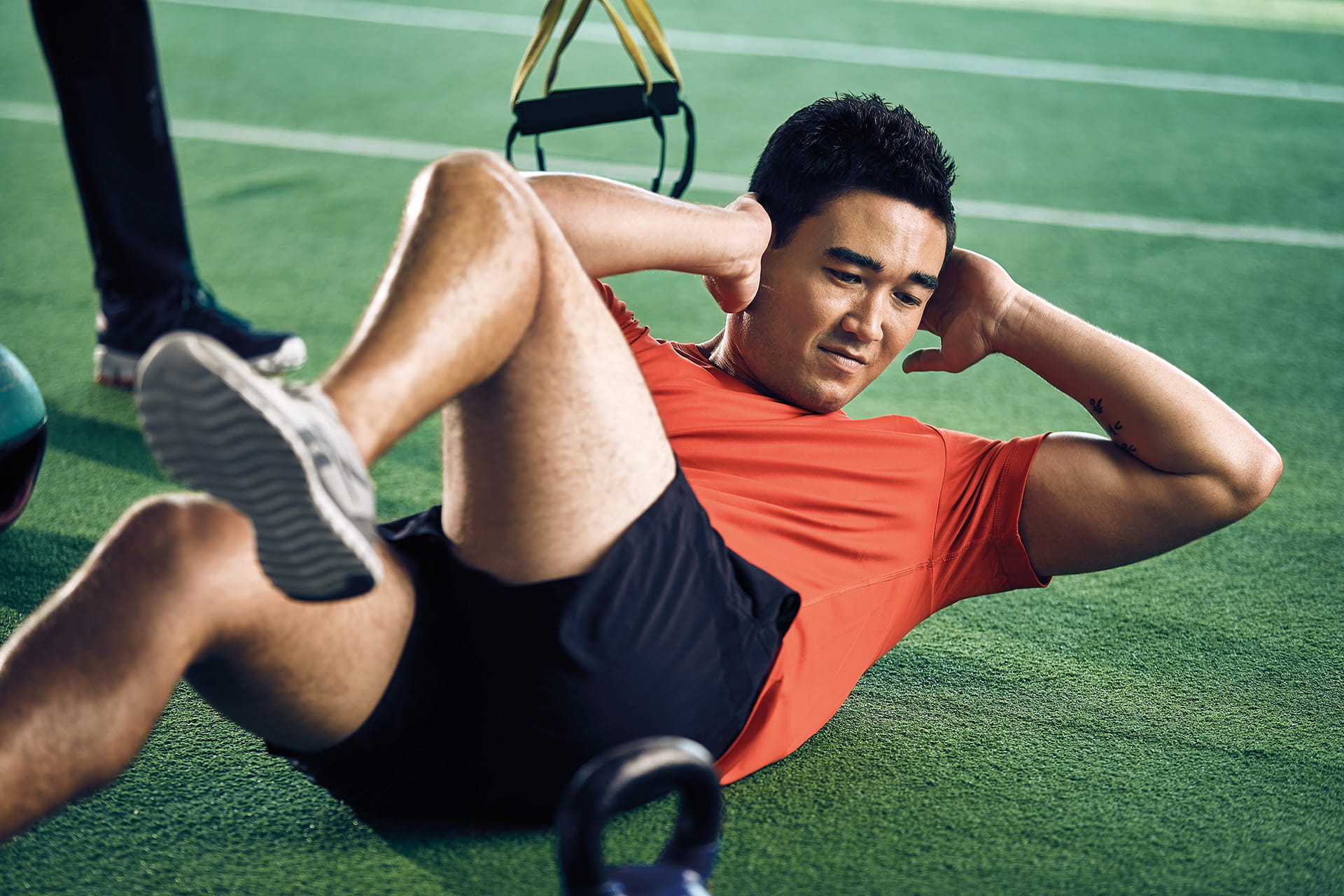 Building your core doesn’t just crank up body strength and boost your athletic prowess. A strong core also enhances balance, stability and helps prevent injury. The sessions work the torso using just your body weight and small equipment. Adjusting intensity and complexity as you level up.